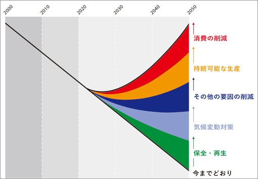 これまでの人間の経済活動が自然及び野生生物に対してネガティブな影響を与えていることを認識した上で、自然資源の持続可能な利用へと移行し、自然について考慮された投資を促進することなどにより、生物多様性の損失を止めて、回復方向へ反転させること。