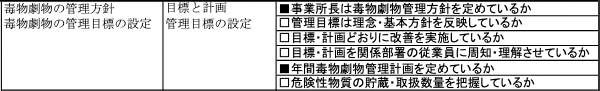 ウ 毒物及び劇物の貯蔵又は取扱いに係る設備等の点検の方法に関する事項