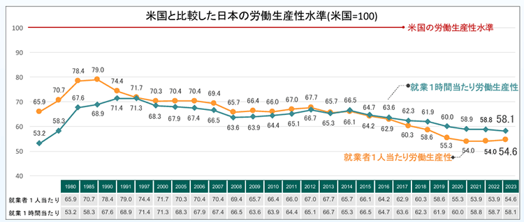 (出典)労働生産性の国際比較2023日本生産性本部