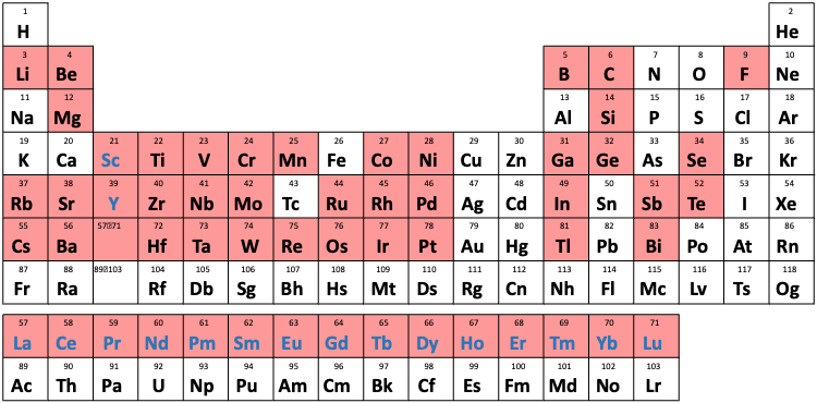 レアメタルとは、以下の金属のグループを指します(ただし、どの金属がレアメタルに分類されるかの定義は、国や時代によって変わります)。
