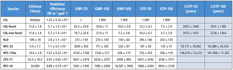 (出典)IPCC Climate Change 2021 The Physical Science Basis(Table 7.15)