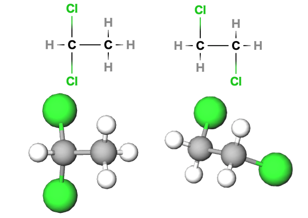 左から、1,1-ジクロロエタン、1,2-ジクロロエタン