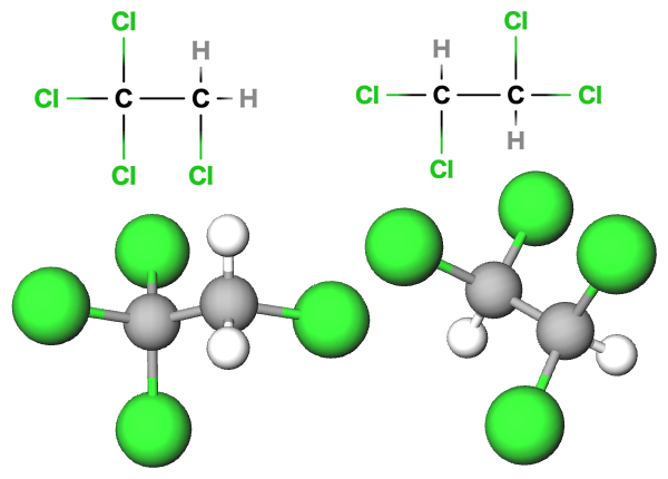 左から、1,1,1,2-テトラクロロエタン、1,1,2,2-テトラクロロエタン