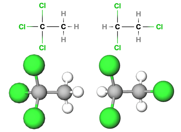 左から、1,1,1-トリクロロエタン、1,1,2-トリクロロエタン